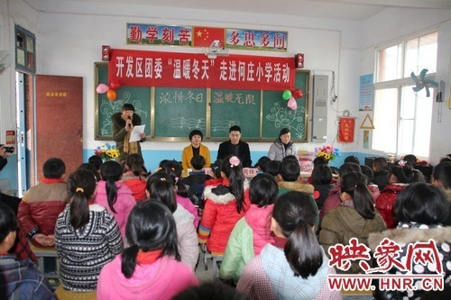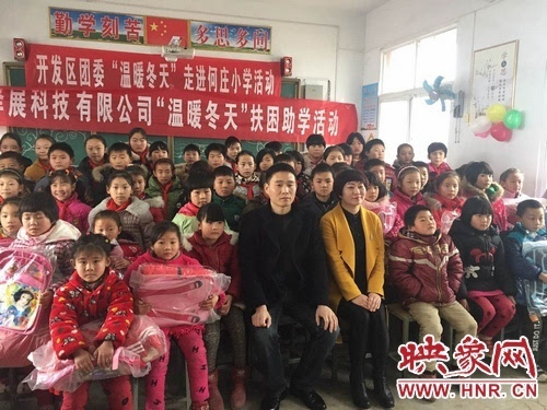 1月10日上午,團(tuán)開發(fā)區(qū)委聯(lián)合河南驛展科技有限公司團(tuán)支部在關(guān)王廟鄉(xiāng)何莊小學(xué)開展“溫暖冬天”活動(dòng)。